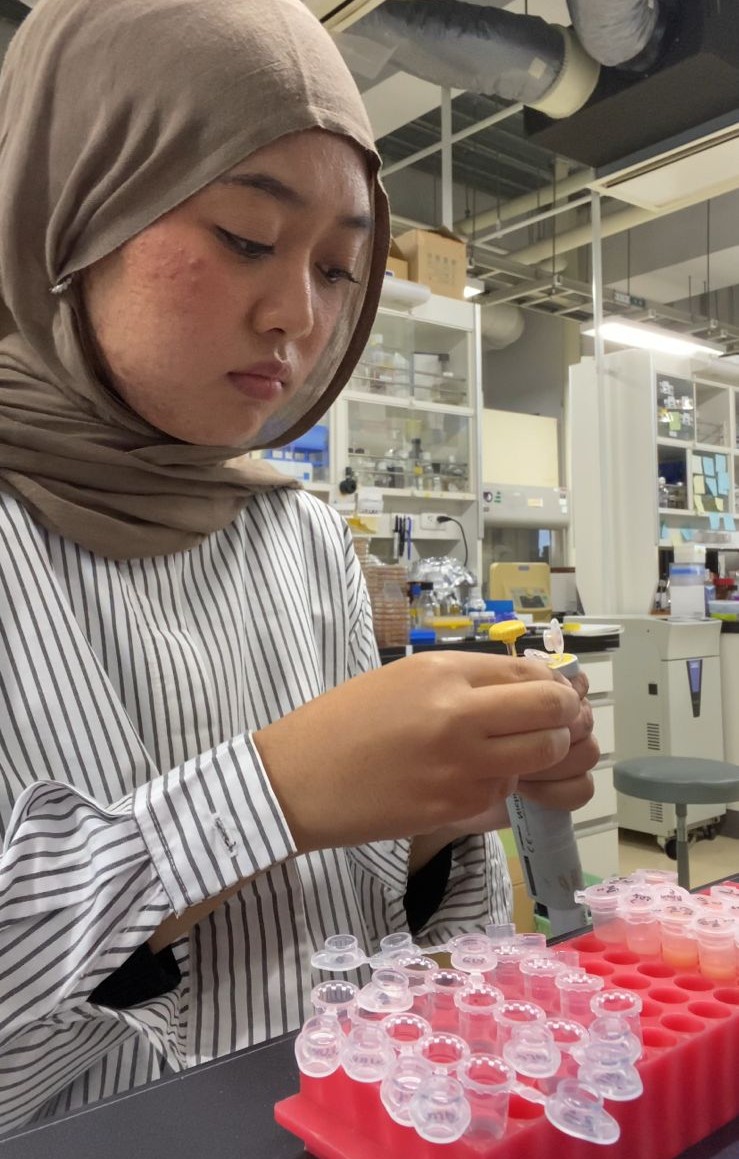 Sementara itu, Muzdalifah berpartisipasi dalam jalur Halal Science, Technology, and Innovation (HaSTI) dengan fokus pada Untargeted Lipidomics untuk Autentikasi Halal. Ia melaksanakan penelitian di Experimental Institute for Medicinal Plants di bawah bimbingan Kazuo Harada, Ph.D. Selama program berlangsung, ia mengembangkan keahlian dalam teknik analisis lipid dan riset autentikasi halal, serta memperoleh pemahaman yang lebih mendalam mengenai penerapan metode ilmiah di laboratorium Jepang.